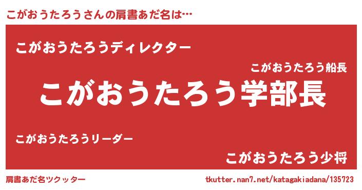| ヘコむあだ名 | 『こがぷりん』『こがふぇ~』 |