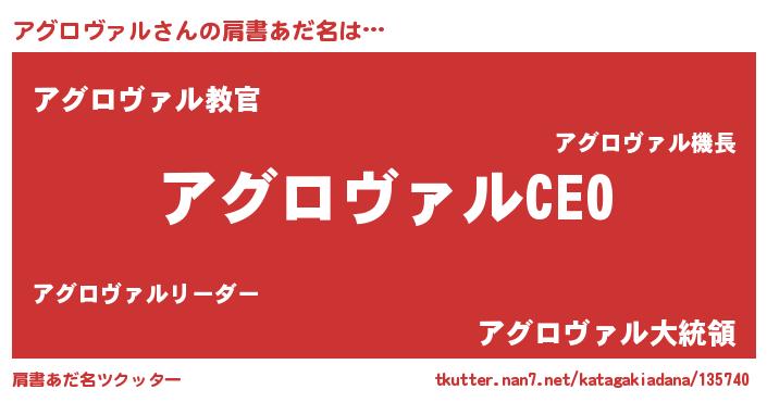 | ファンタジー風あだ名 | 『アグフェル』『ヴァルアグーナ』 |