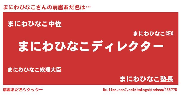 | 欧米人風あだ名 | 『アンジェラ・まにわひなこ』 |