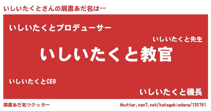 | ヘコむあだ名 | 『いしいたくと(遠い目)』『いしっふぃ~』 |