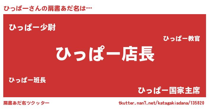 | 男性向けラノベタイトル風あだ名 | 『ひっぱーの憂鬱』『ヒッパースレイヤー』 |