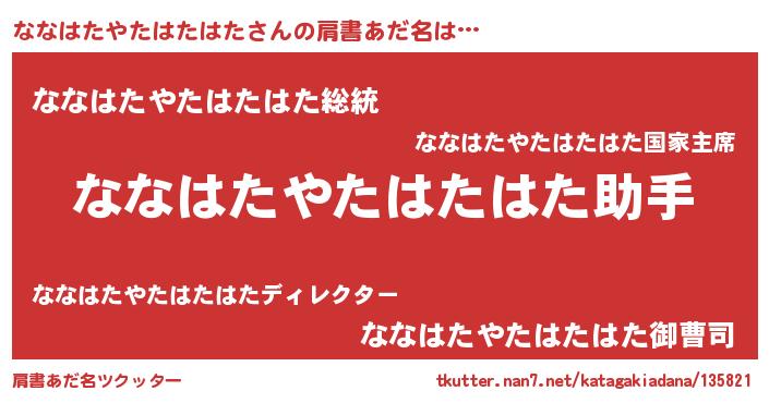 | 欧米人風あだ名 | 『ダニエルななはたやたはたはた』 |