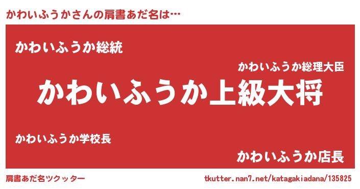 | 恥ずかしいあだ名 | 『カワイフウカデラックス』『かわっちょ』 |