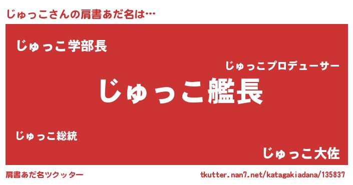 | 男性向けラノベタイトル風あだ名 | 『緋弾のジュッコ』 |