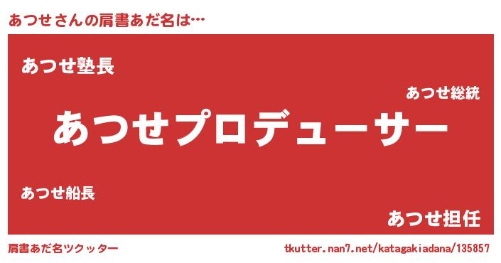 | ヘコむあだ名 | 『あつっぺ』『あつせ(爆)』『豆乳』 |