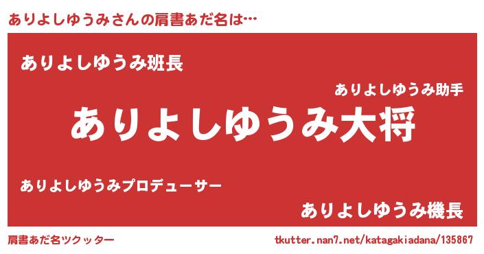 | ヘコむあだ名 | 『ありっちょ』『ありよしゆうみ(笑)』 |