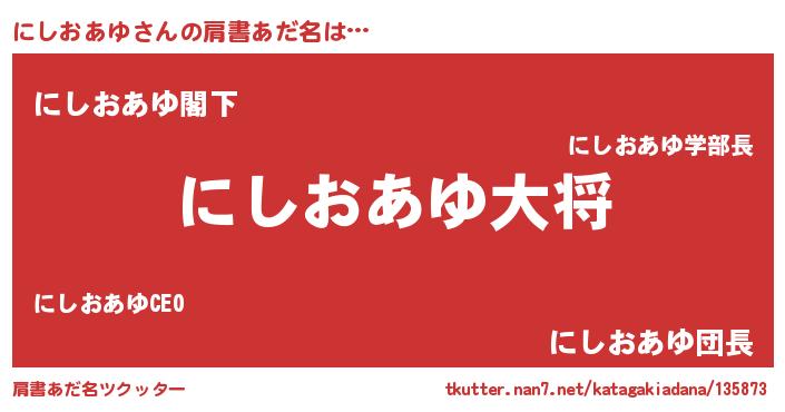| 女子向けラノベタイトル風あだ名 | 『にしおあゆの玉の輿計画!』 |