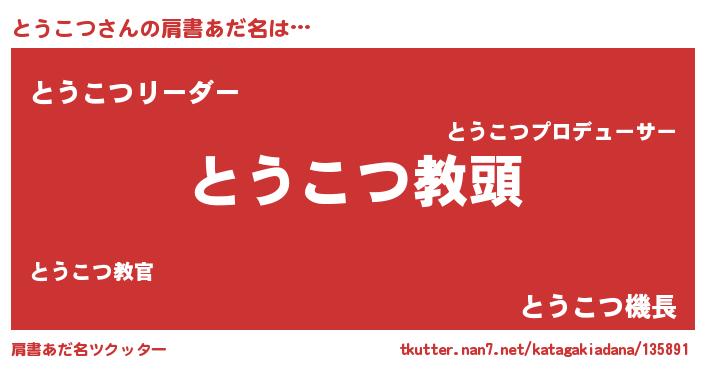 | 意味不明あだ名 | 『永久保存とうこつ』『自称とうこつ』 |