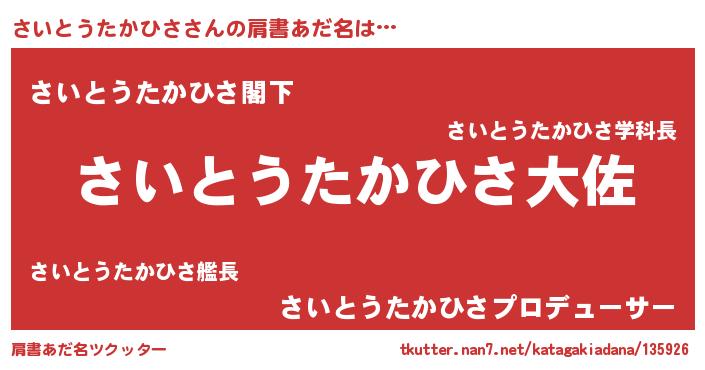 | 料理風あだ名 | 『さいとうたかひさごはん』 |