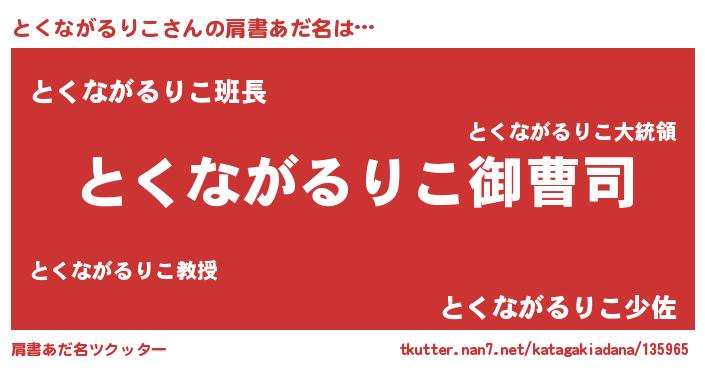 | 胡散臭い通販商品みたいなあだ名 | 『必ず成功する霊験あらたかなお札…その名も「とくながるりこ」』 |