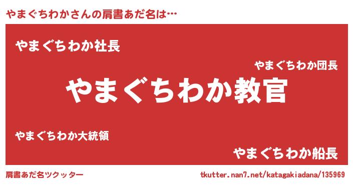 | ヒーロー風カッコイイあだ名 | 『仮面ヤマダー』『スーパーヤマグチワカ』 |