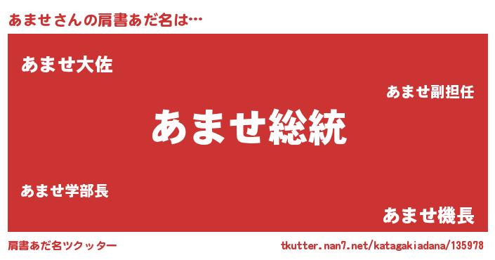 | 意味不明あだ名 | 『自称あませ』『ニラ科あませ属』 |