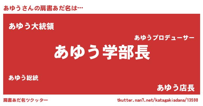 | 女子向けラノベタイトル風あだ名 | 『死神あゆうの再婚』『あゆうの婚約者』 |