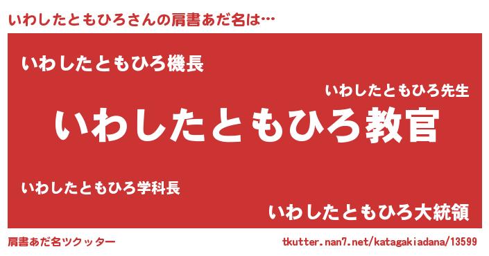 | 男性向けラノベタイトル風あだ名 | 『この素晴らしい世界にいわしたともひろを!』 |