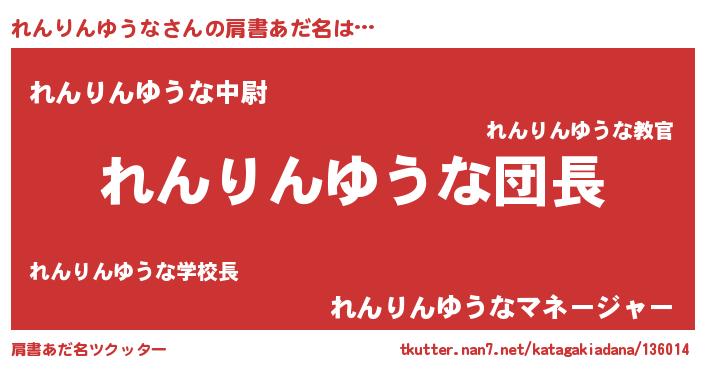 | 意味不明あだ名 | 『とにかく怪しいれんりんゆうな』 |