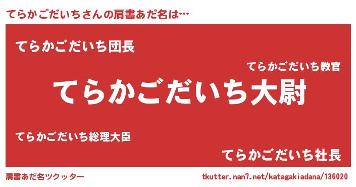 | ポケモン風あだ名 | 『テラキング』『ヒテラカゴダイチ』 |