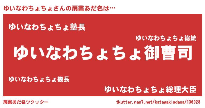 | 胡散臭い通販商品みたいなあだ名 | 『必ず成功する霊験あらたかなお札…その名も「ゆいなわちょちょ」』 |