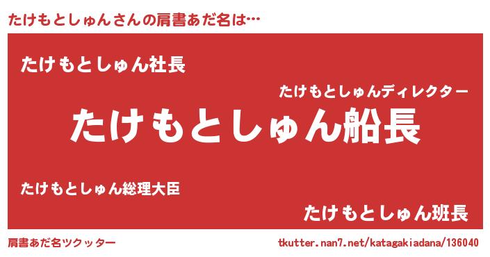 | ヒーロー風カッコイイあだ名 | 『スーパータケモトシュン』 |