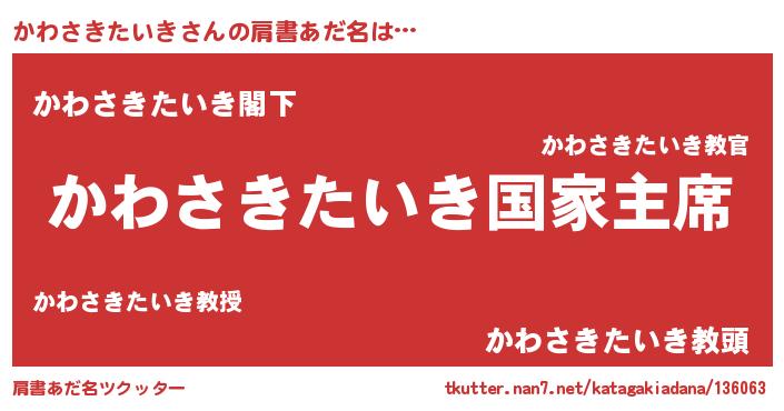 | 意味不明あだ名 | 『かわさきたいきフォーエバー』 |