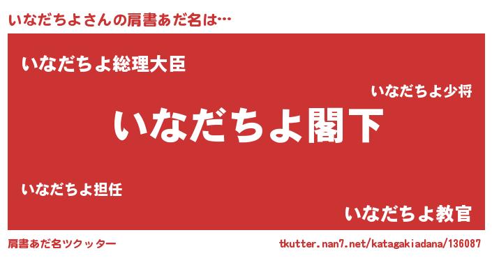 | 女子向けラノベタイトル風あだ名 | 『いなだちよストレイドッグス』 |
