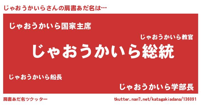 | 意味不明あだ名 | 『自称じゃおうかいら』 |