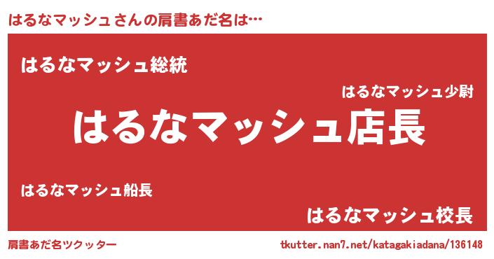 | ヒーロー風カッコイイあだ名 | 『スーパーハルナマッシュ』 |