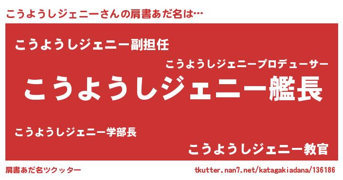 | 男性向けラノベタイトル風あだ名 | 『うちのこうようしジェニーが世界を掌握している!』 |