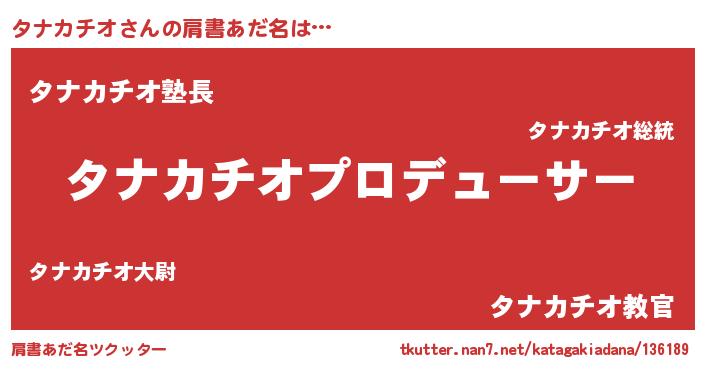 | ポケモン風あだ名 | 『タナゴンZ』『ヒタナカチオ』 |