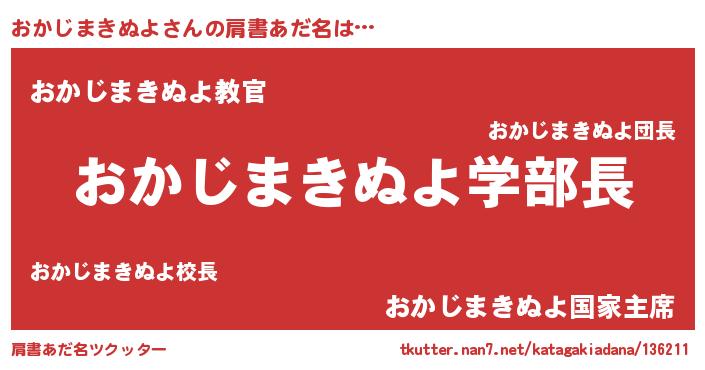 | 男性向けラノベタイトル風あだ名 | 『おまえをオタクにしてやるから、俺をおかじまきぬよにしてくれ! 』 |