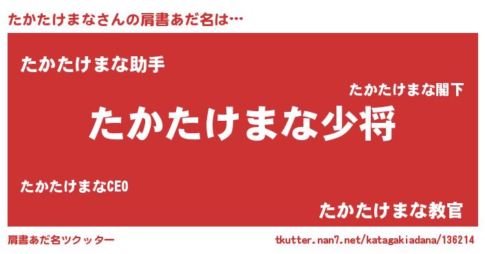 | 男性向けラノベタイトル風あだ名 | 『タカタケマナスレイヤー』 |