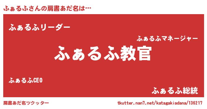 | 意味不明あだ名 | 『住所不定無職ふぁるふ(41歳)』 |