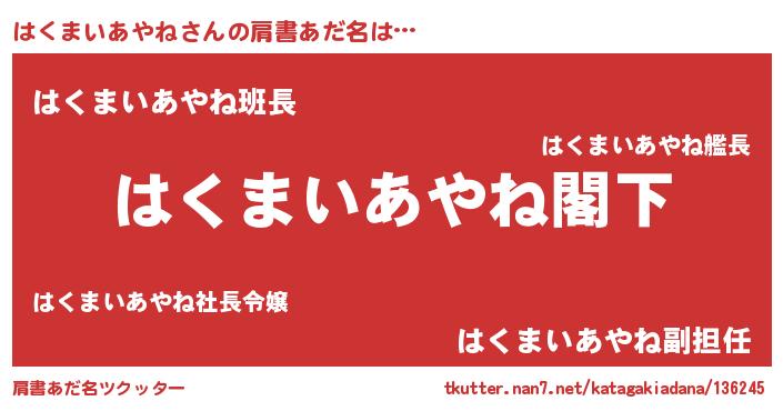 ヘコむあだ名 | 『はくっ子』『はくまいあやね(笑)』 |