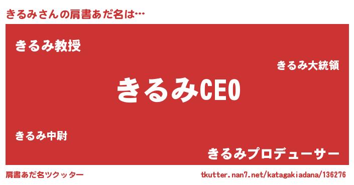 | 自動車の名前っぽいあだ名 | 『キルティマ』『フィッキ』『キクア』 |