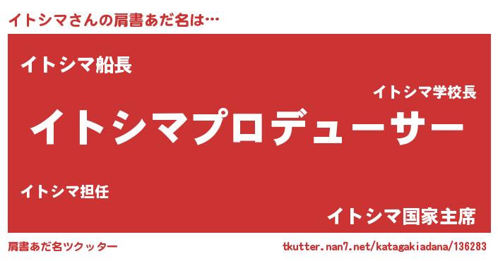 | 男性向けラノベタイトル風あだ名 | 『イトシマに滅ぼされるだけの簡単なお仕事です』 |