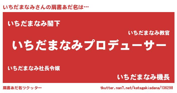| ヘコむあだ名 | 『いちっふぃ~』『いちだまなみ(笑)』 |
