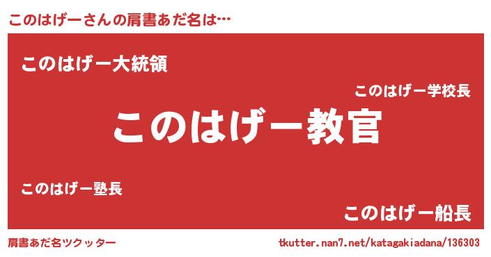 | 意味不明あだ名 | 『住所不定無職このはげー(43歳)』 |