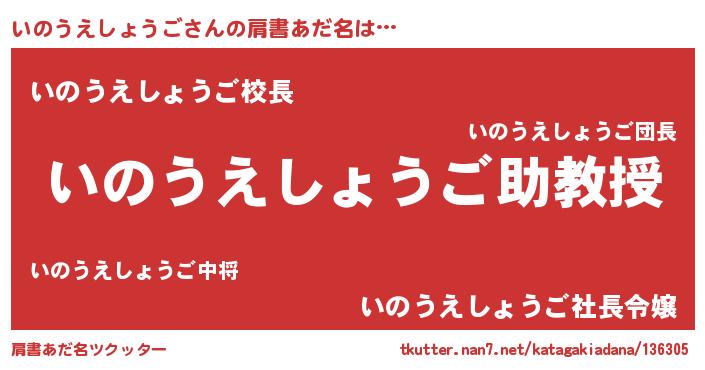 | ヘコむあだ名 | 『いのうえしょうご(笑)』『いのにゅー』 |