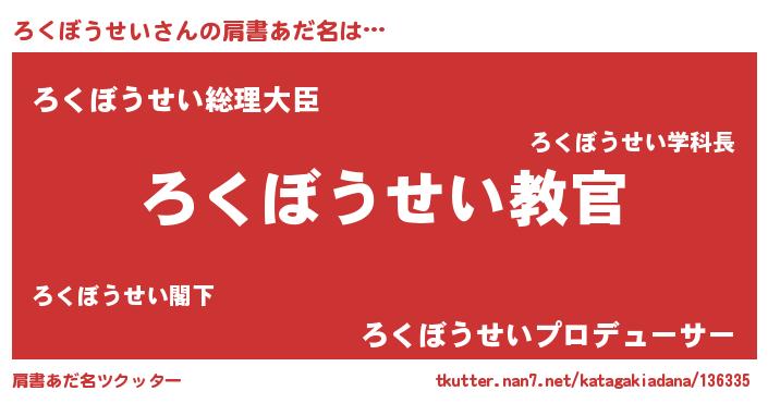 | 男性向けラノベタイトル風あだ名 | 『この素晴らしい世界にろくぼうせいを!』 |