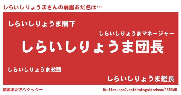 | 意味不明あだ名 | 『とにかく怪しいしらいしりょうま』 |