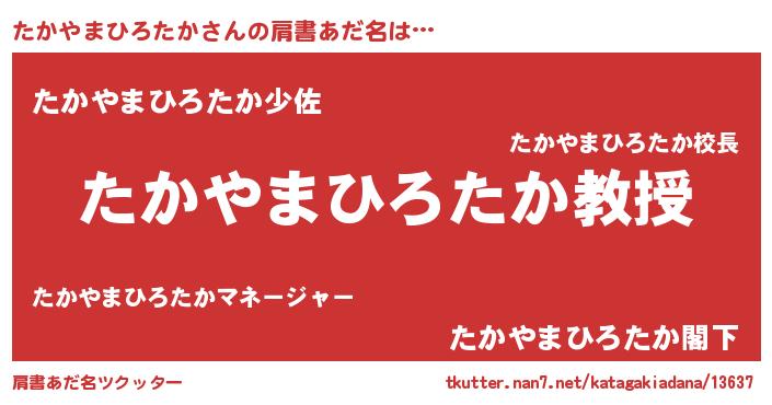 | ヘコむあだ名 | 『たかやまひろたか(小並感)』『たかお』 |