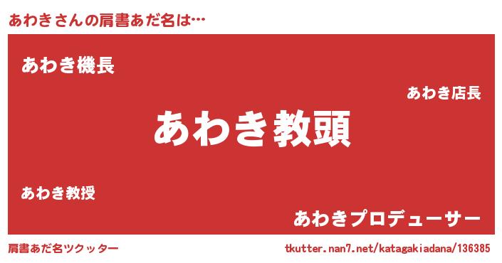 | ヒーロー風カッコイイあだ名 | 『ネオアワキ』『スーパーアワキ』 |