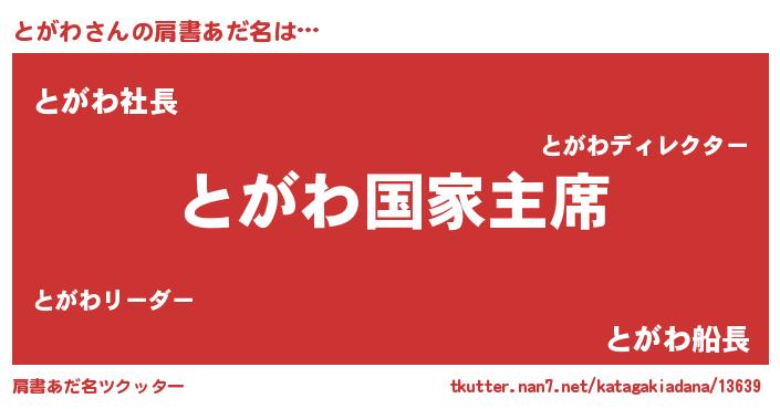 | ヒーロー風カッコイイあだ名 | 『ウルトラとがわマン』『スーパートガワ』 |