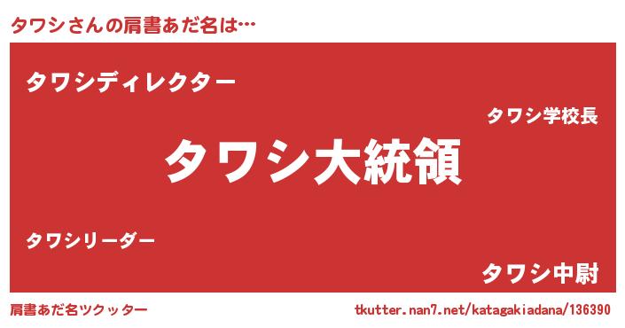 | ヒーロー風カッコイイあだ名 | 『ウルトラタワシマン』『銀牙騎士タワ』 |