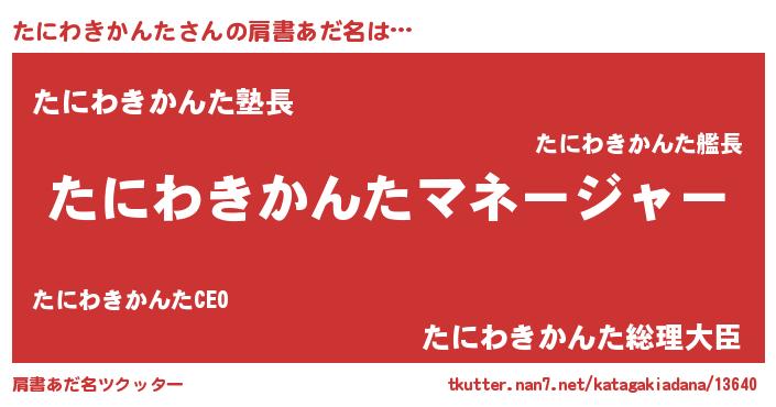 | ポケモン風あだ名 | 『タニゴンZ』『ヒタニワキカンタ』 |