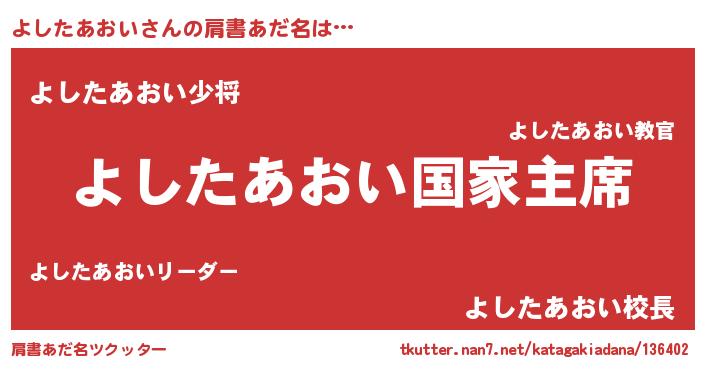 | 欧米人風あだ名 | 『よしたあおいクリステル』 |