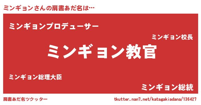 | 意味不明あだ名 | 『住所不定無職ミンギョン(7歳)』 |