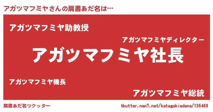| 恥ずかしいあだ名 | 『プリティーアガツマフミヤ』『アガちん』 |