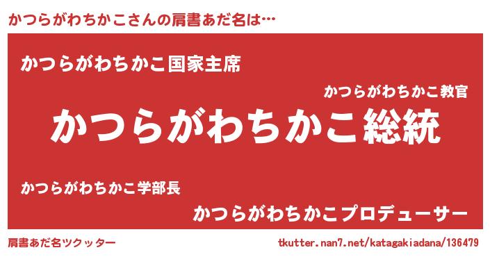 | 男性向けラノベタイトル風あだ名 | 『魔法科高校のかつらがわちかこ』 |