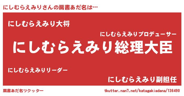 | 欧米人風あだ名 | 『にしむらえみりクリステル』 |