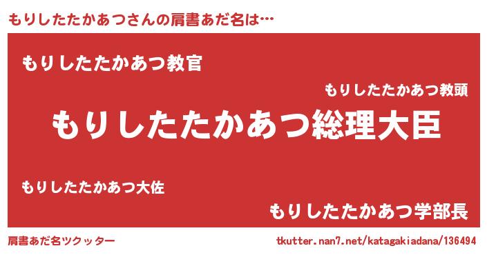 | 意味不明あだ名 | 『もりしたたかあつフォーエバー』 |